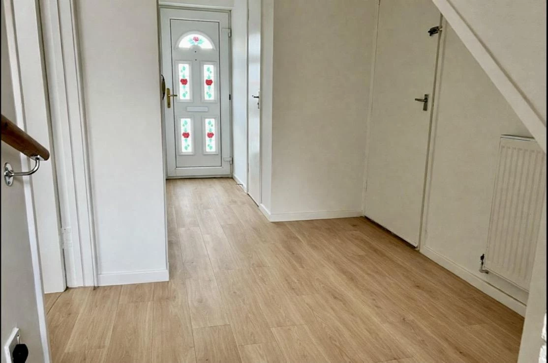 The property is approached via steps leading to the front entrance. Upon entering, you are welcomed by a bright hallway. To the left is a convenient ground floor WC, while to the right there is ample built-in cupboard space providing excellent storage. Further along the hallway, the impressive newly installed kitchen is situated to the left (free standing white goods not included). Designed with family living in mind, it offers plenty of space for a dining table and chairs, with French doors opening directly onto the rear garden — perfect for entertaining and enjoying outdoor living. The double-aspect living room benefits from plenty of natural light, creating a warm and inviting space. A rear doorway from the hallway also provides direct access to the garden.