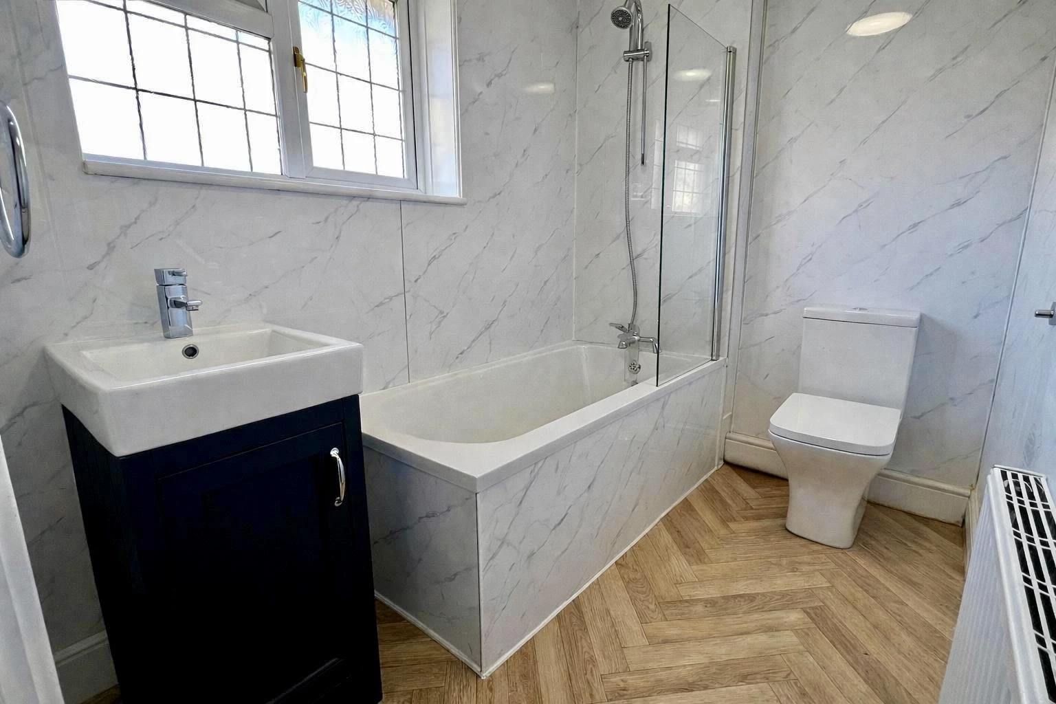 Upstairs, the property continues to impress with well-proportioned bedrooms. The master bedroom is a spacious double-aspect room mirroring the size of the living room. There is a further double bedroom to the rear and a comfortable single bedroom ideal as a nursery or home office. The newly installed family bathroom features a modern suite comprising a WC, wash hand basin with vanity unit, and a shower over the bath, modern aqua boarding and herringbone flooring.