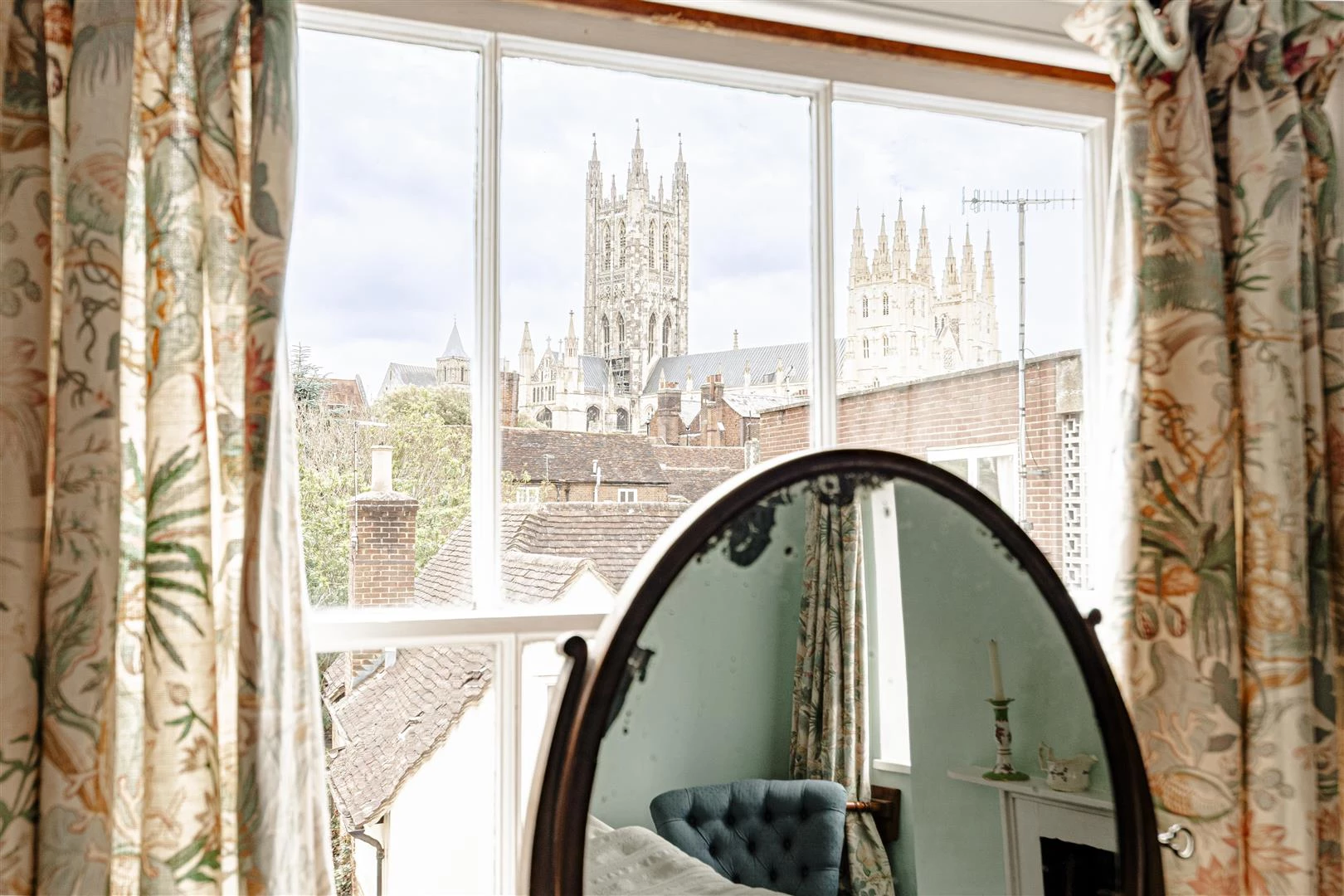 On the second floor are two further double bedrooms—one with a fireplace and exceptional views towards the Cathedral.