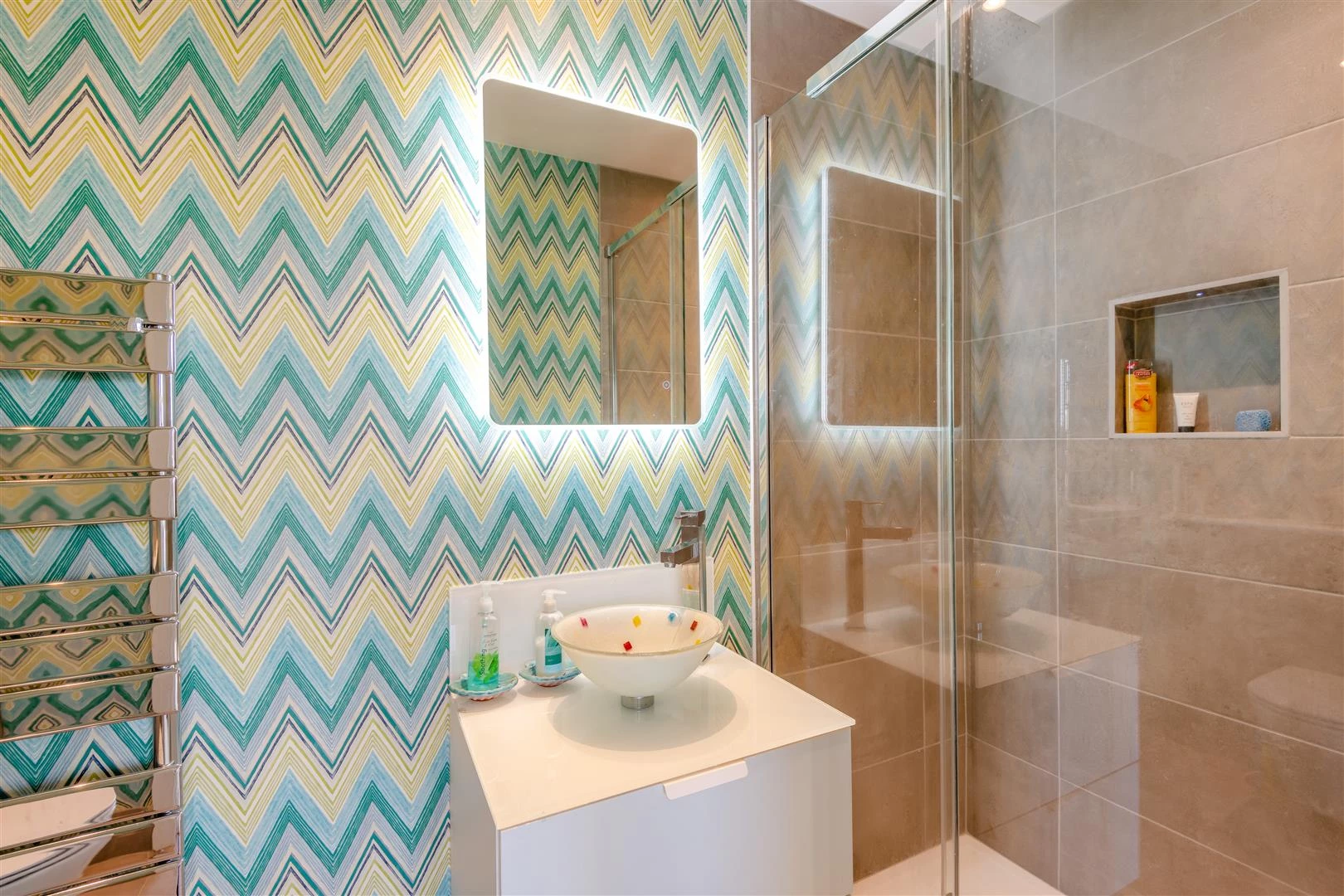 The main house showcases the character of the Victorian era, with stained-glass windows, deep skirtings, and the original staircase, all complemented by tasteful modern upgrades such as a tiled entrance hall with underfloor heating that flows throughout the ground level. A cloakroom sits conveniently at the end of the hallway.