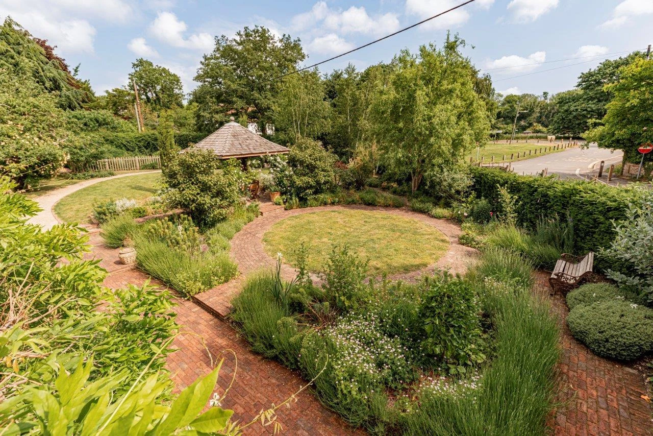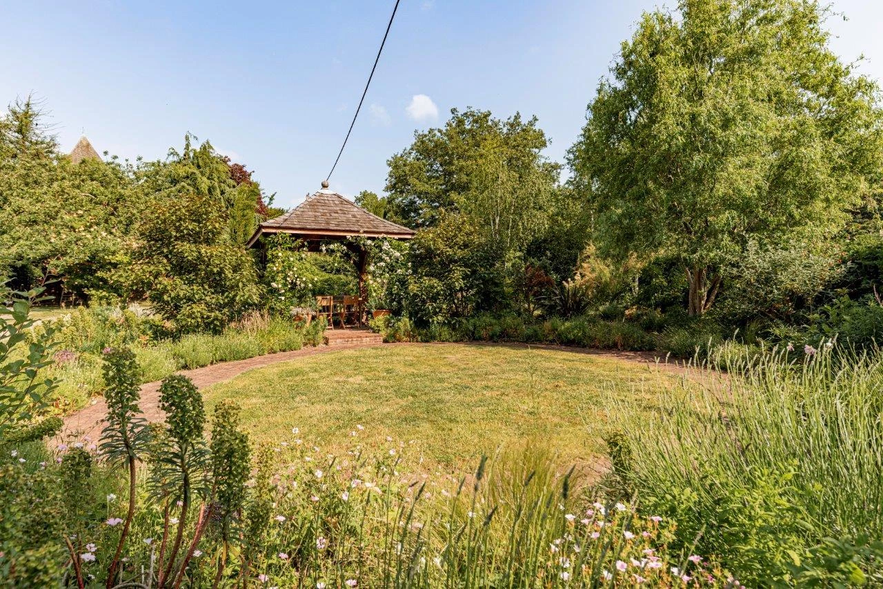 The property offers over 2,600 sq ft of accommodation, including five double bedrooms, three reception rooms, and a large kitchen/breakfast room. The ground floor features a spacious living room with exposed beams, engineered oak flooring, and a magnificent inglenook fireplace housing a contemporary log burner. The sitting room benefits from a second, working log burner dating to 1910, and the separate dining room opens directly to the gardens, making it ideal for entertaining.