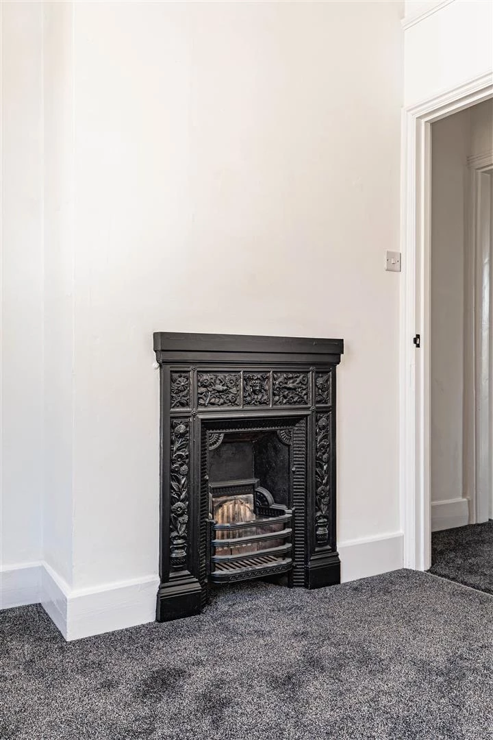 The ground floor comprises a welcoming living area with a feature fireplace and bay window. To the rear, a useful utility space leads through to the stylish family bathroom.