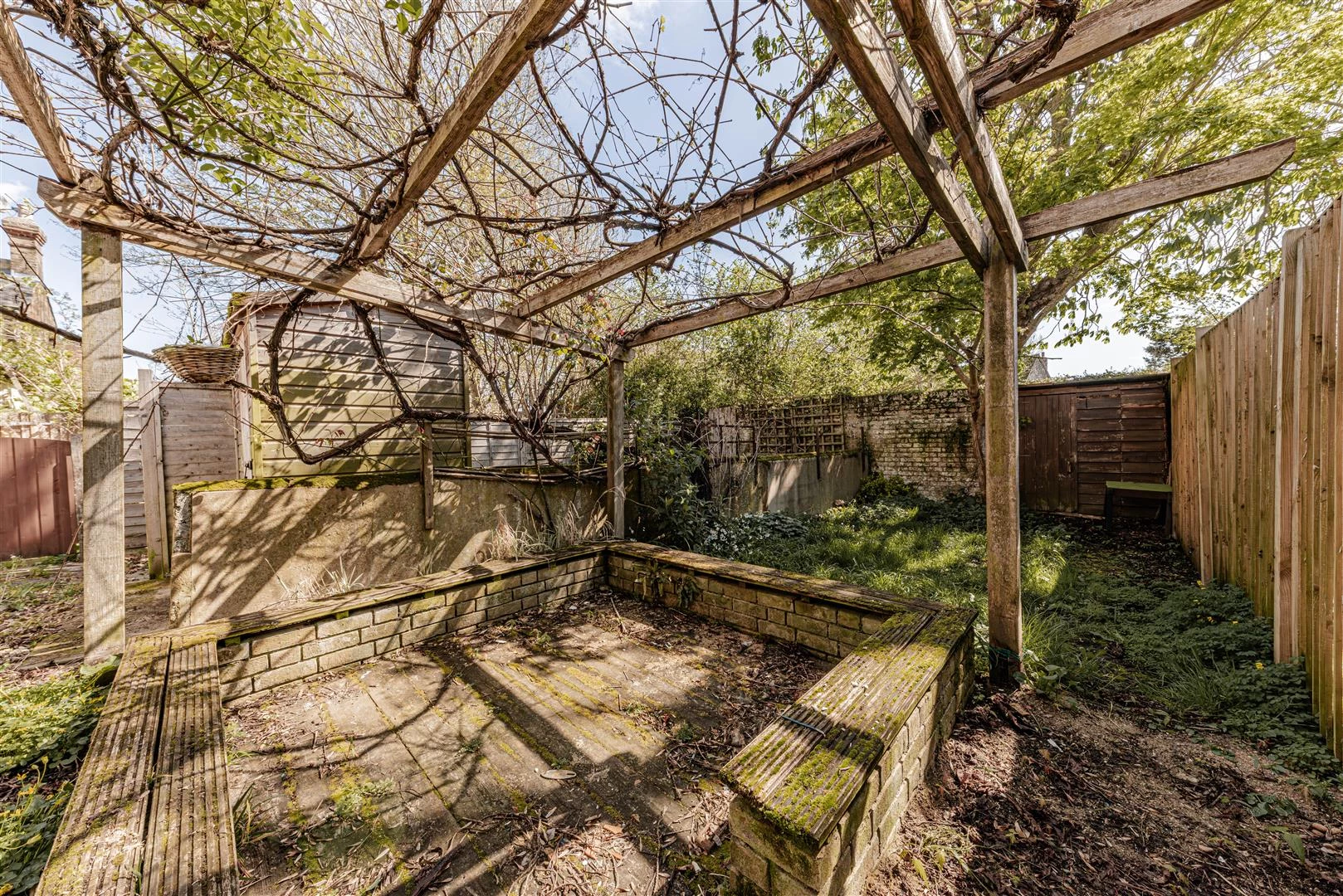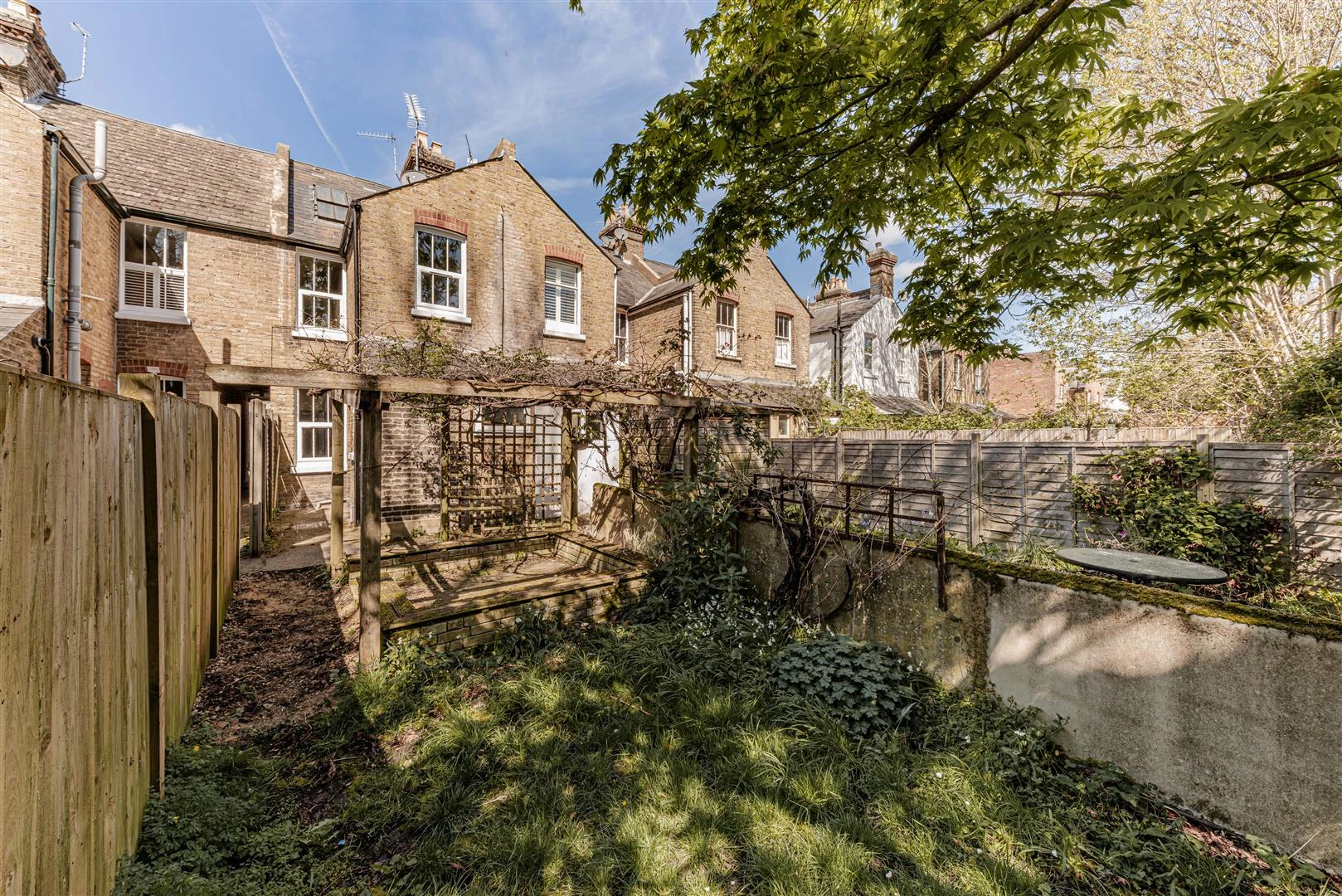 Externally, the property enjoys a charming garden with a lawn, established planting and a seating area beneath a pergola, perfect for relaxing or entertaining.