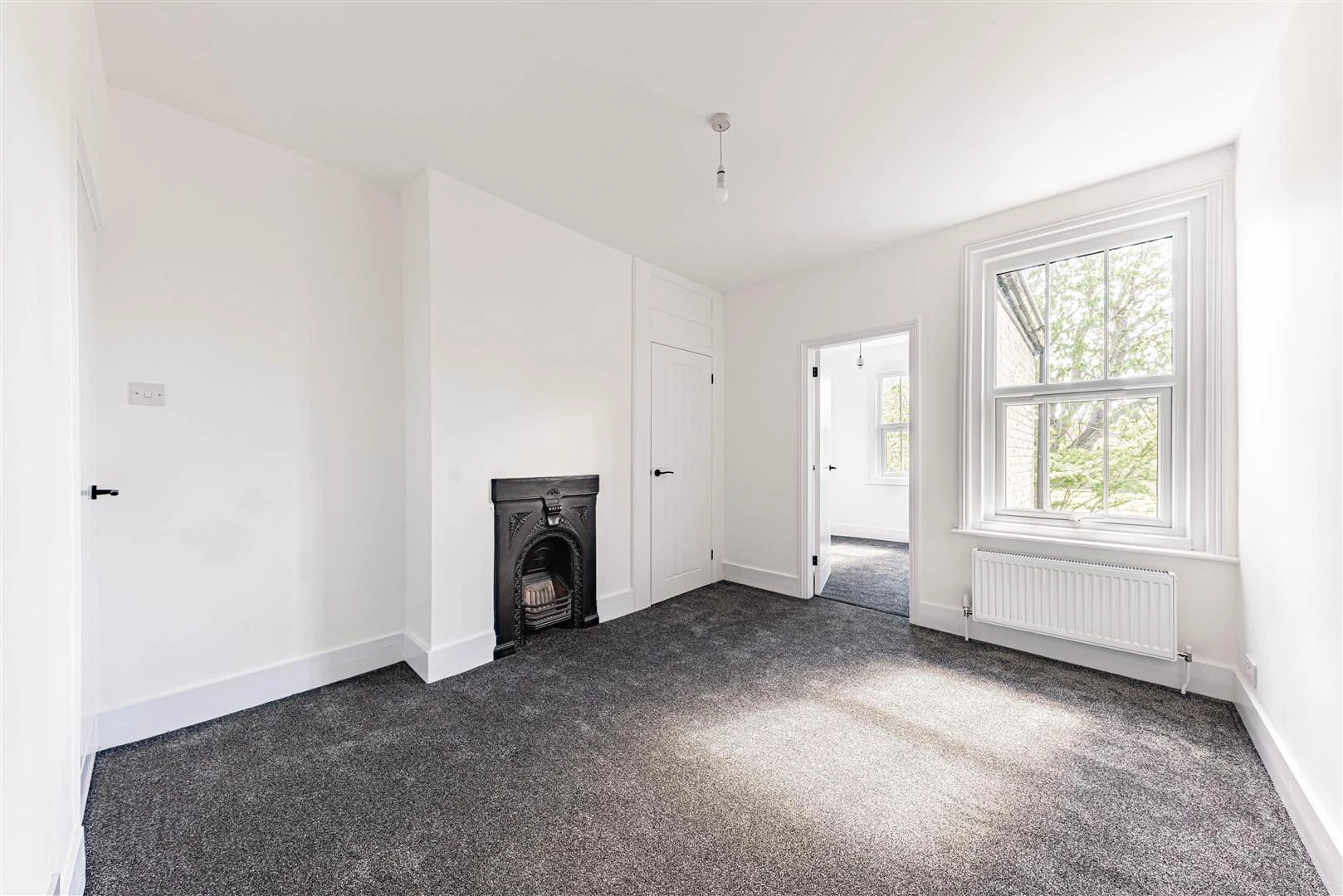 Upstairs, the first floor offers two well-proportioned double bedrooms. The principal bedroom benefits from built-in storage and an additional adjoining room, ideal for use as a nursery, dressing area or home office.