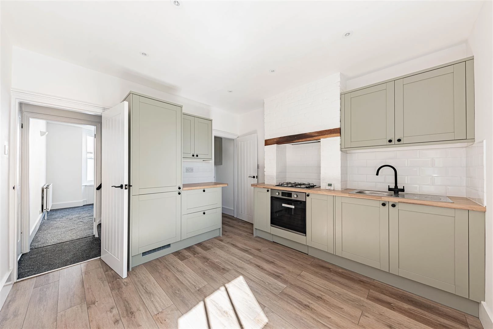 A particular highlight is the brand new kitchen, finished to a high specification with quality fittings, including a new oven, hob, extractor, and integrated fridge/freezer, alongside a practical larder space.