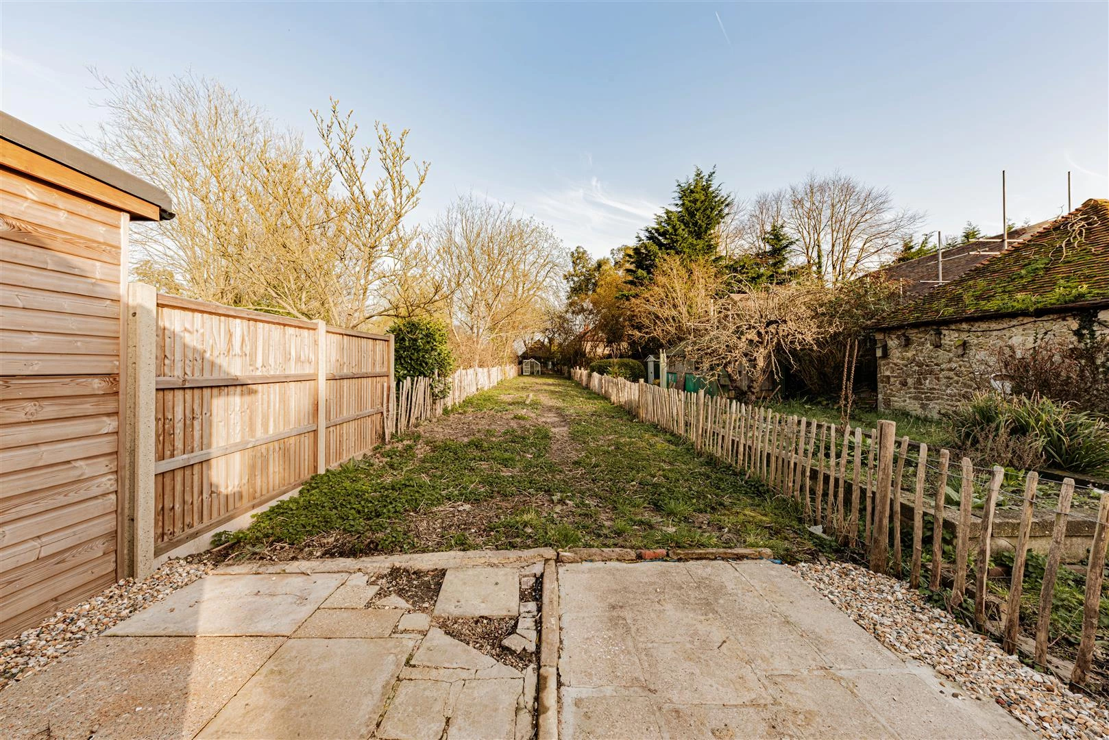 There is a right of way for neighboring properties to cross the garden which is typical of terrace cottages.