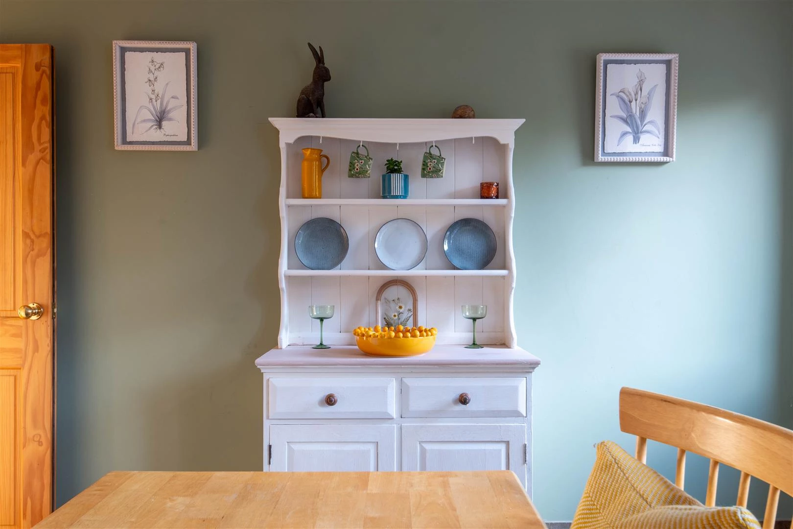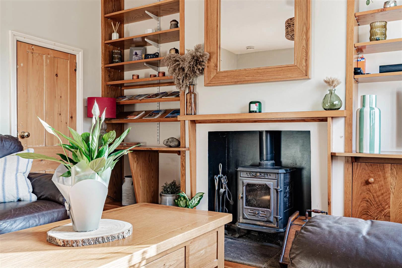 The front door opens to the welcoming sitting room which has a wood burning stove, oak flooring and views over the front garden.
