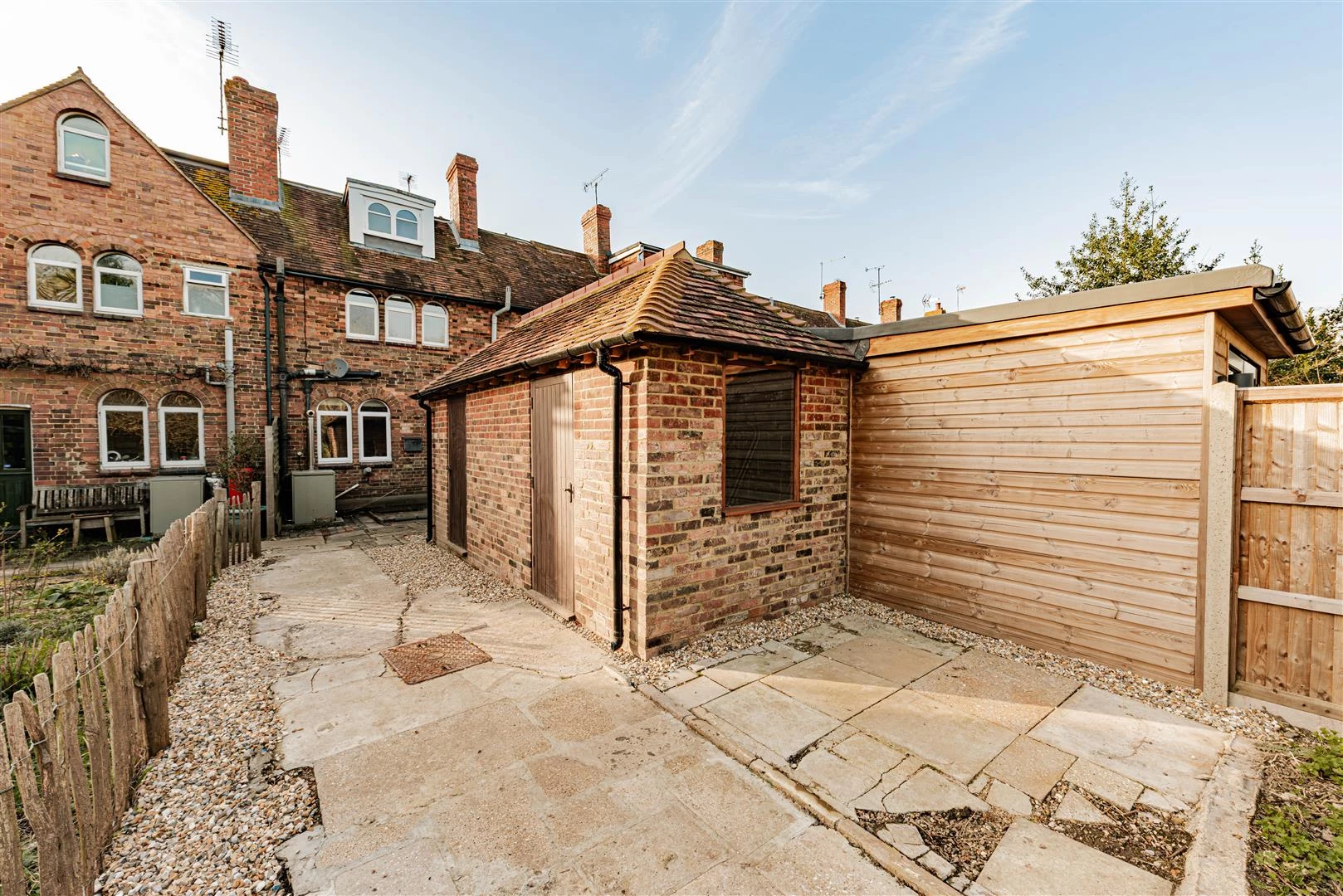 Most of the garden lies to the rear and measures approximately 200’. There is a paved patio as well as a recently constructed brick-built outbuilding with a pitched tiled roof and electricity connected which offers excellent potential for conversion into a garden room or additional home office.