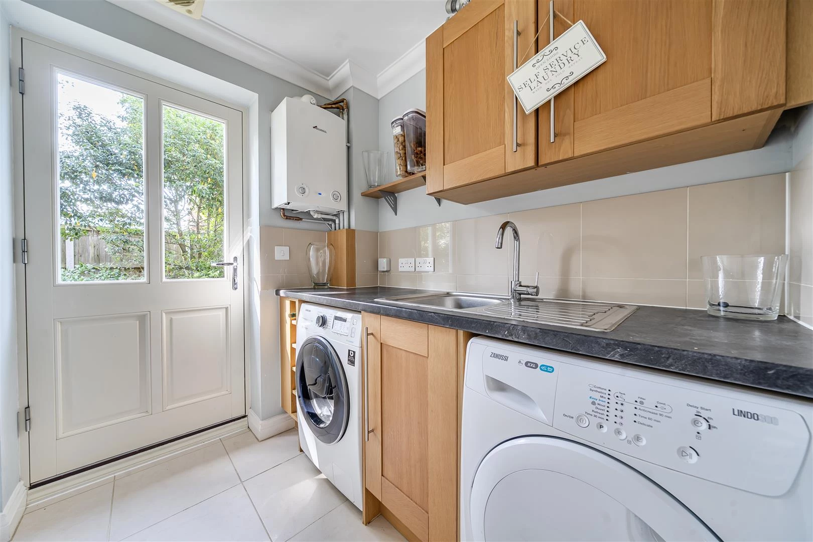 The front door opens to the spacious entrance hall with stairs to the first floor. The large, double-aspect sitting room provides ample space for family living and entertaining, while the stylish kitchen/diner, also double aspect, is fitted with an excellent range of wall and base units, integrated appliances and generous space for a dining table. French doors open directly onto the pretty rear garden. A separate utility room, a formal dining room and a downstairs cloakroom complete the ground floor.