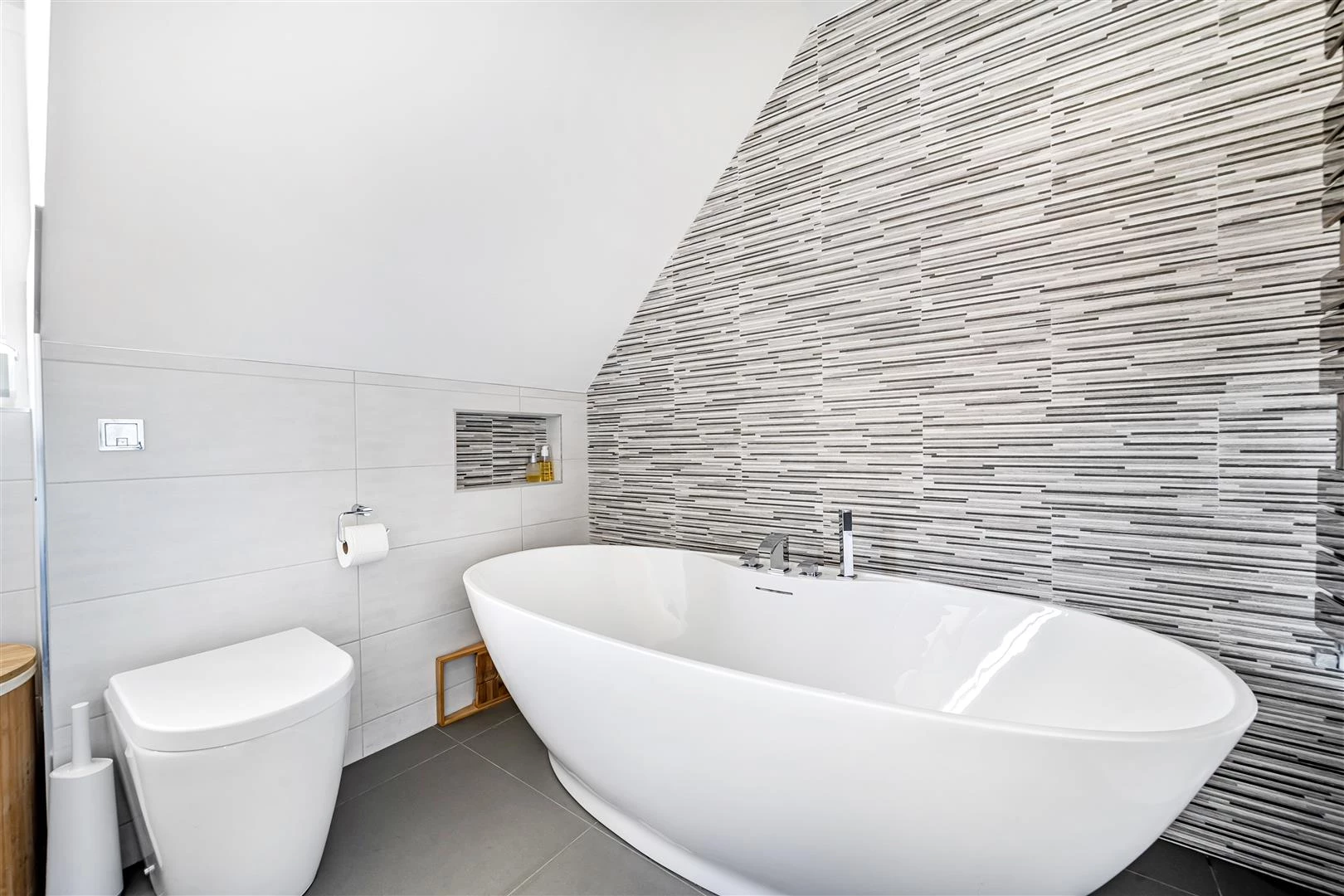 Upstairs, a spacious landing leads to four double bedrooms. The master suite includes a walk-in dressing area and a luxurious en-suite shower room. Bedroom two also benefits from an en-suite and fitted cupboard, while the remaining bedrooms are served by a stunning family bathroom with freestanding bath, separate shower, w.c. and wash hand basin.