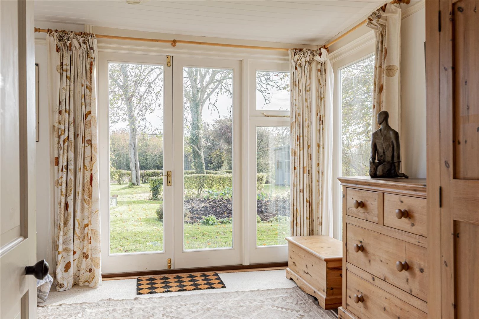 Outside: The delightful cottage gardens blend seamlessly into the surrounding countryside, enclosed by low hedges and alive with birdsong and wildlife. Mature trees, colourful planting, and a lovely summerhouse complete the tranquil setting.