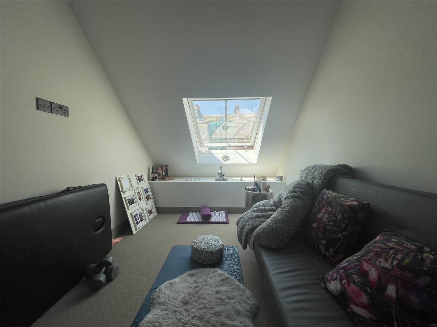 Carpeted, under eaves storage, Velux window, inset lighting, radiator.