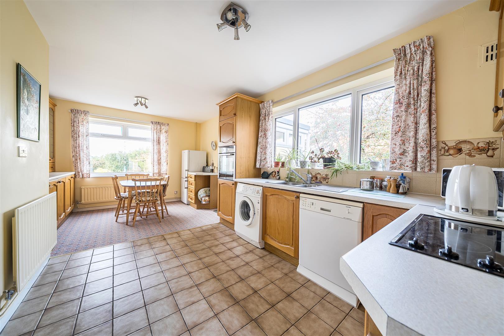 The ground floor accommodation begins with a welcoming porch leading into an entrance hall that opens into the dining room, forming the central hub of the home. A spacious kitchen is positioned to the rear and benefits from a separate utility area and secondary entrance, offering practical day-to-day convenience. The living room is a bright and inviting space with sliding doors opening into a conservatory, which enjoys panoramic views across the surrounding gardens and creates a seamless connection between indoor and outdoor living. A ground-floor bedroom with fitted wardrobes completes this level, ideal for those seeking single-level living or guest accommodation.
