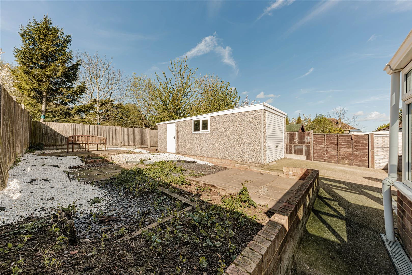 Externally, a shared driveway provides access to the detached garage. The majority of the garden is situated to the rear and measures approximately 43 ft by 28 ft.