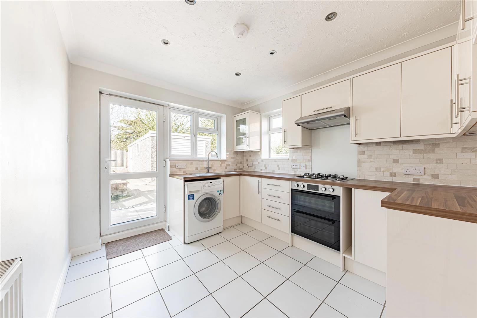 The property has been tastefully decorated and is ready to move straight into. The accommodation comprises an entrance hall, a welcoming sitting room with doors opening into a conservatory that overlooks the rear garden, and a well-appointed kitchen fitted with a range of wall and base units, space for appliances and a built-in electric oven with gas hob.